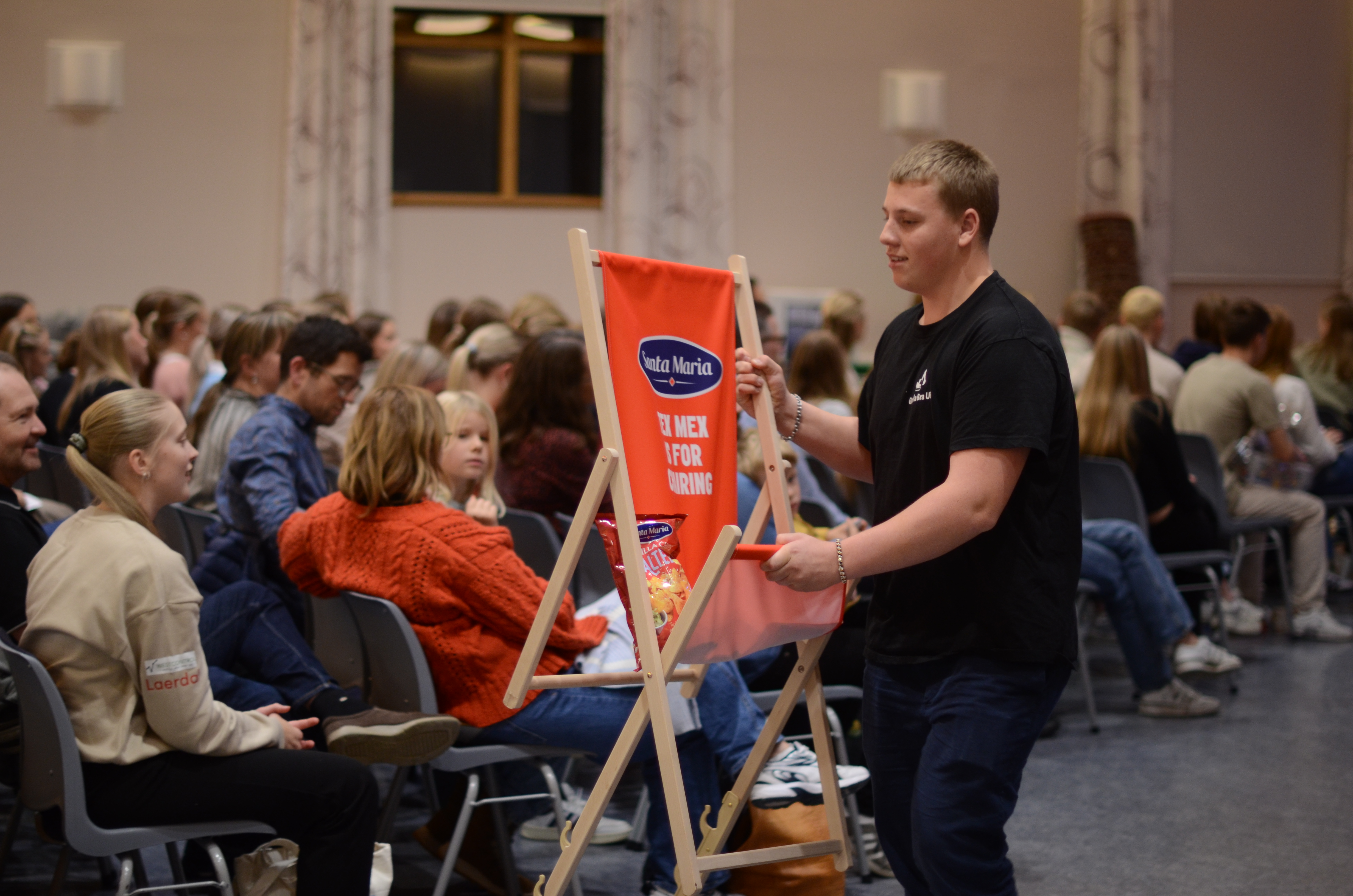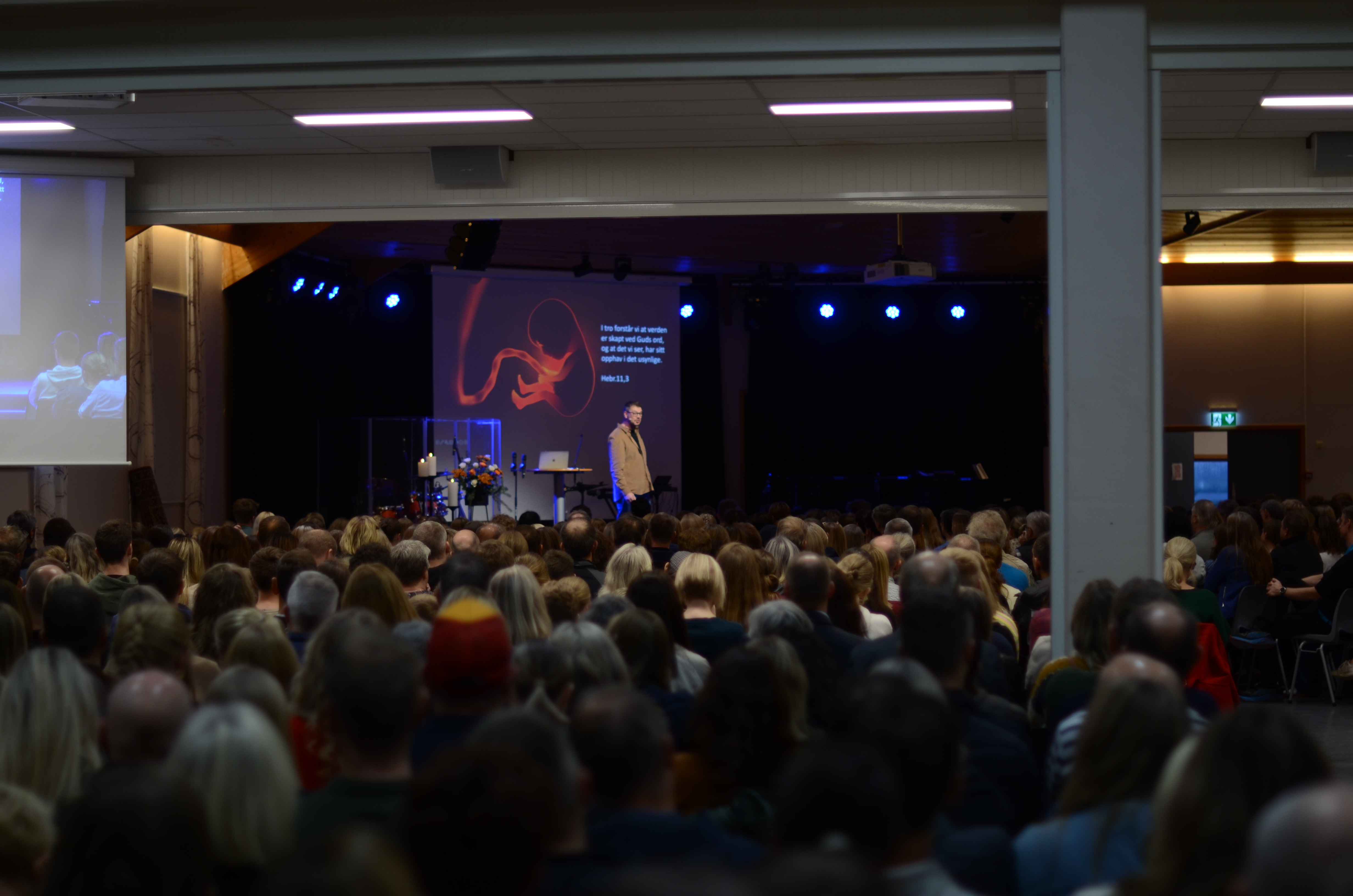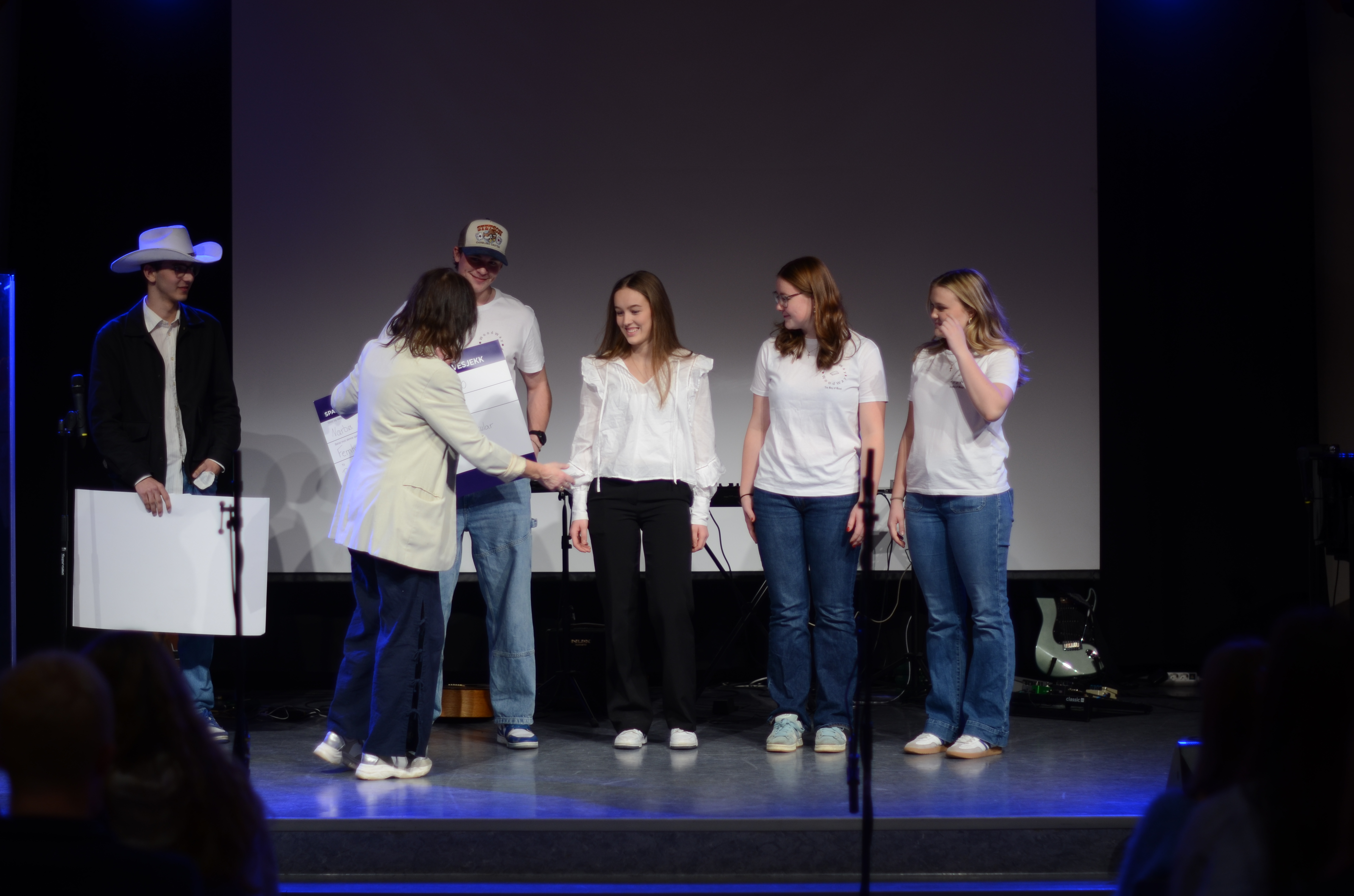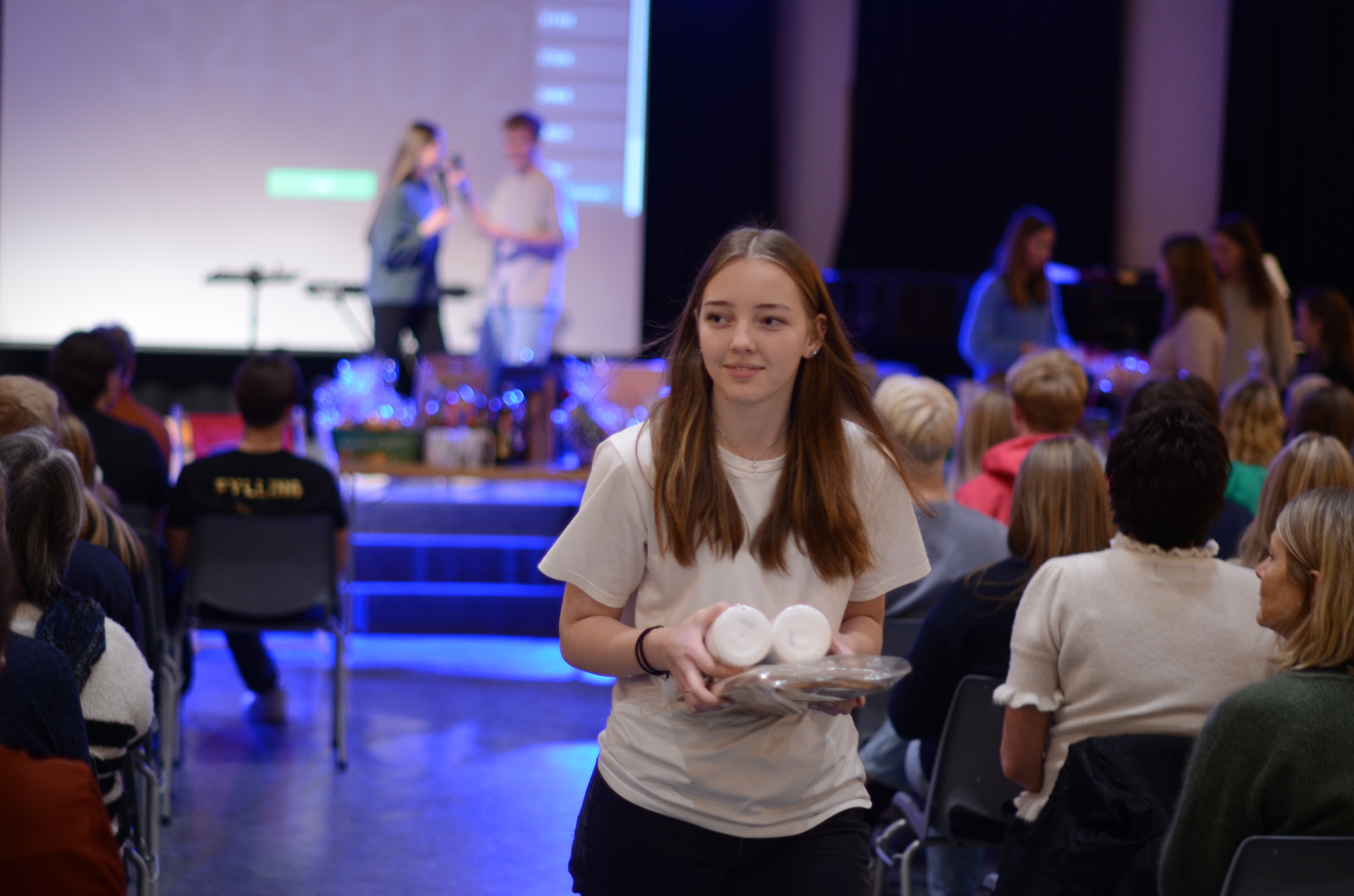 På programmet i møtesalen stod også songinnslag av elevar, foredrag av formidlaren Alexis Lundh i organisasjonen Tro & Medier og andakt av Nærbø-pastoren Magnus Nebdal.