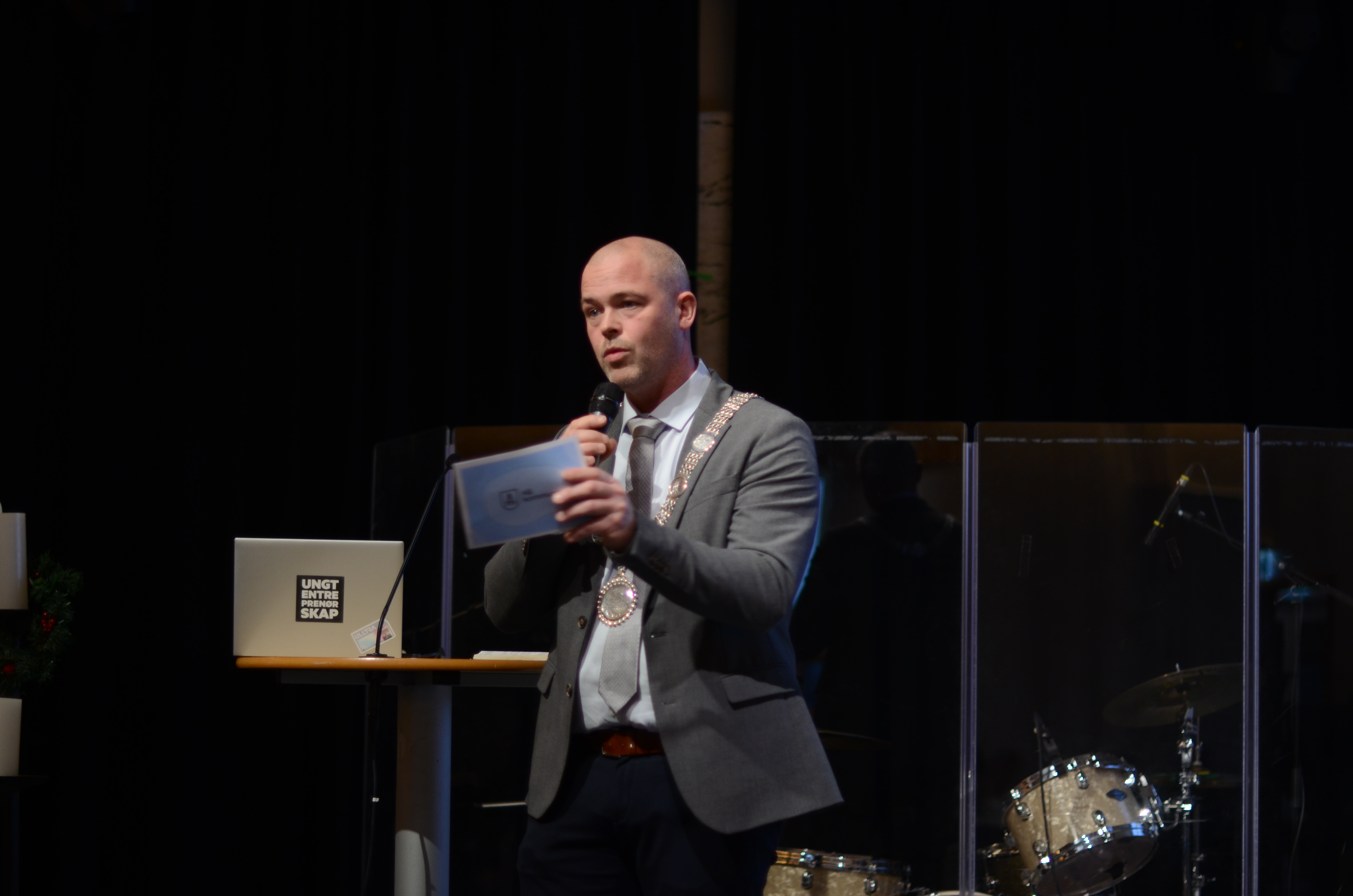 Ordføraren stilte med blankpussa kjede då entreprenørskapselevar hylla arven etter Hans Nielsen Hauge.