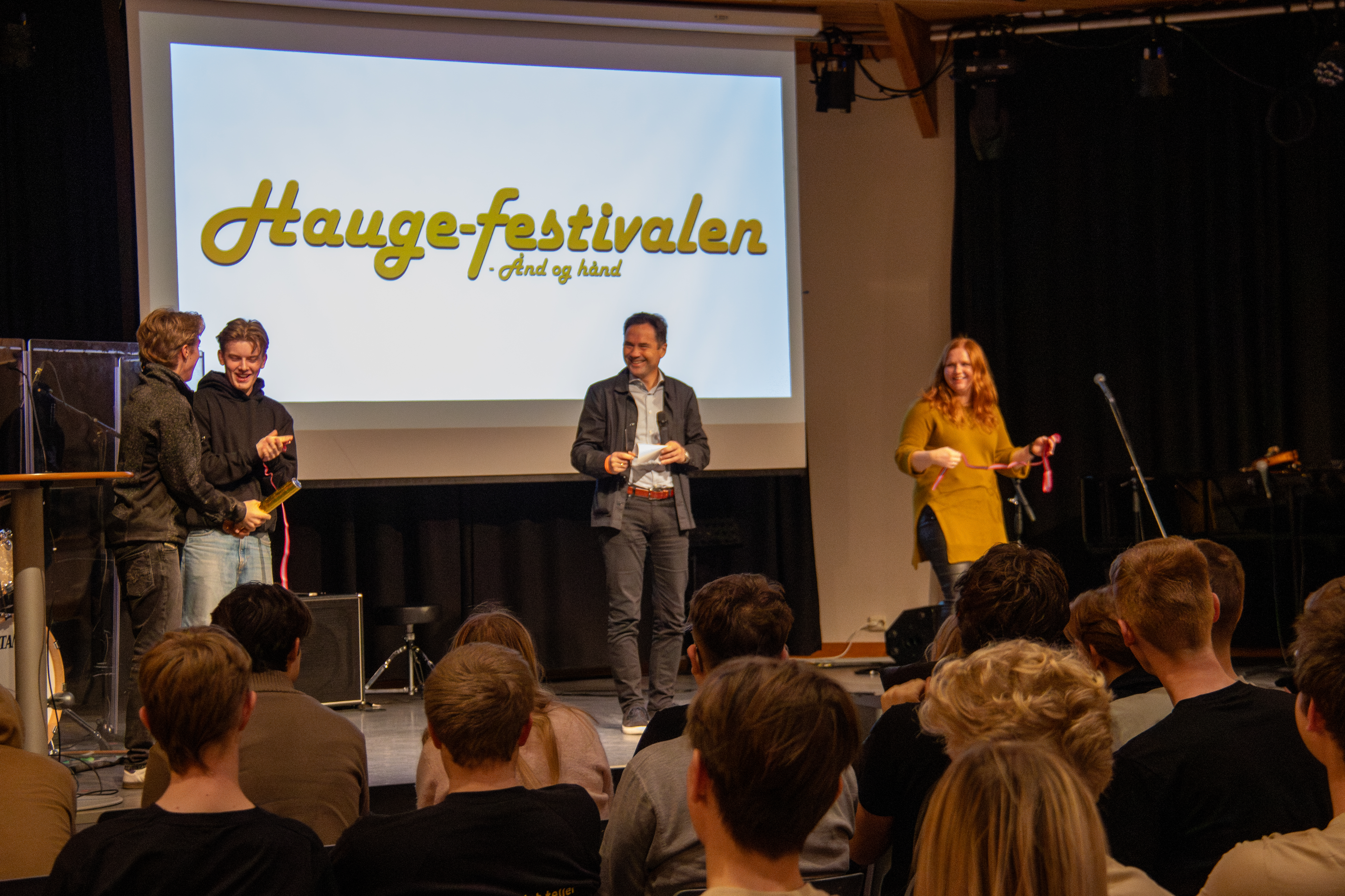 Teologen og Tryggheim-læraren Sondre Frøyland Svenseid fortalde om Hans Nielsen Hauge, mens bonden og nestleiaren i Tine-styret, Arthur Salte, gav elevane næringslivskveik i haugiansk ånd. Ordførar Andreas Bjorland (KrF) kasta glans over arrangementet, og Maria Aasbø i Ungt Entreprenørskap Rogaland ønskte elevane god jul og motiverte til fylkesmeisterskapen for ungdomsbedrifter 2026. Festivalen blei avslutta med julebord (les: julegraut) med støveldans.